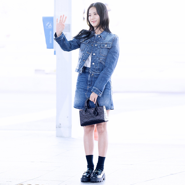 반면 같은 데님 셋업을 입은 블랙핑크 지수는 공항패션으로 찬사를 받았습니다.