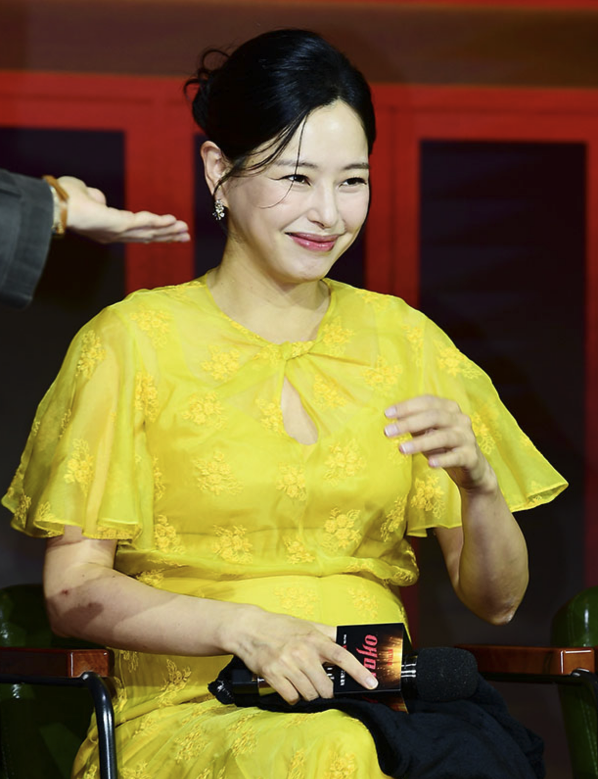실크 오간자 소재와 노란색 컬러로 시사회 현장과도 잘 어우러졌습니다.