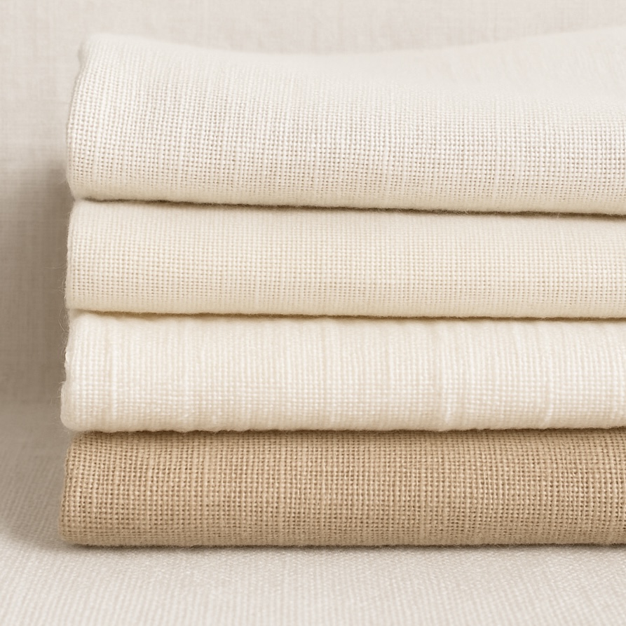 린넨은 가벼움과 뛰어난 흡습성을 동시에 갖춘 소재로 여름 대표 원단이며, 레이온은 실크처럼 부드럽고 시원한 촉감을 제공합니다. 코튼은 피부 자극이 적고 자연스러운 착용감을 주어 민감한 피부를 가진 사람들에게도 적합합니다.