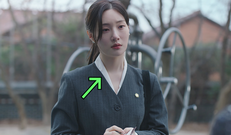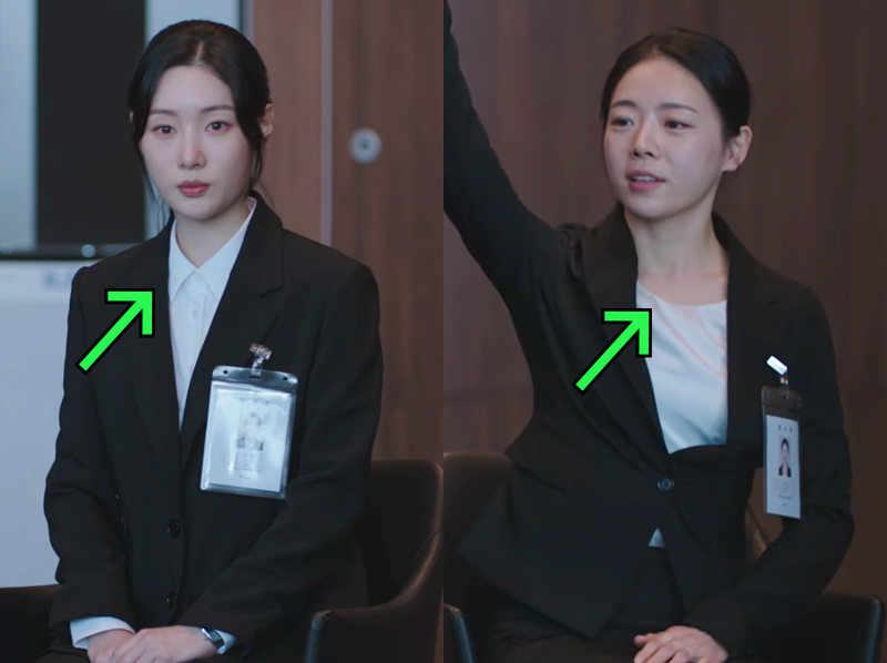 같은 장면에서 다른 여성 지원자는 재킷 안에 라운드넥 이너를 착용했는데요,