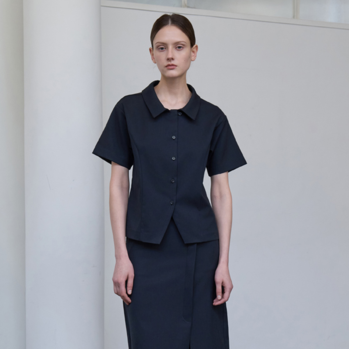 이러한 디자인을 반영한 브랜드는 AMOURMOIER가 있습니다. 특히 반팔 셔츠블라우스는 베이직한 디자인으로 깔끔한 실루엣으로 제작되어 팔뚝살과 좁은 어깨를 커버할 수 있습니다. 반팔 셔츠블라우스와 셋업으로 랩스커트 아이템도 있기 때문에 격식 있는 자리에 입기 좋습니다. 또 슬리브리스 블라우스도 있는데, 어깨 아래 살짝 내려오는 디자인으로 어깨가 좁은 체형에게 시각적으로 넓혀주는 디자인입니다. 또한 시어서커 소재로 제작된 블라우스는 볼륨감을 살려주기 때문에 체형 보완에 도움을 줍니다.