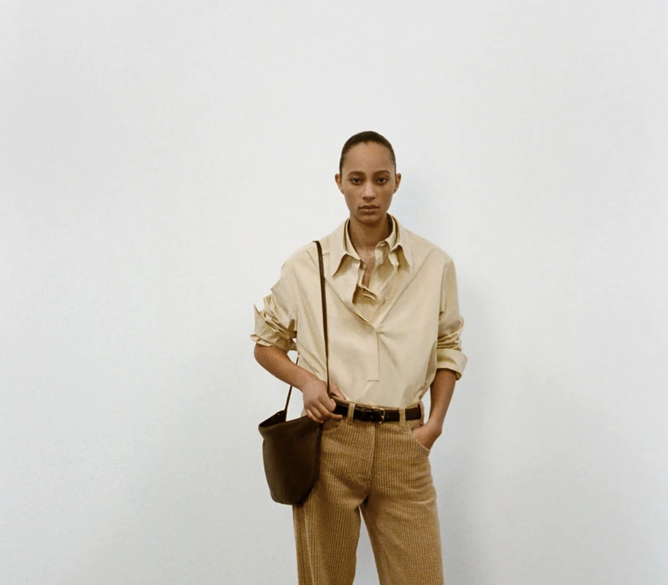 같은 계열 컬러의 셔츠를 겹쳐 입고 소매를 무심하게 접어 올리면, 깔끔하면서도 멋스러운 느낌이 살아나요.